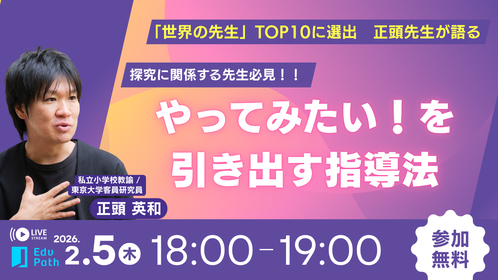 (無料セミナー)世界が認めた“トップティーチャー”が語る 生徒の「やってみたい!」を引き出す探究指導