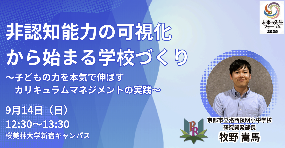 「非認知能力の可視化から始まる学校づくり 〜子どもの力を本気で伸ばすカリキュラムマネジメントの実践〜」京都市立洛西陵明小中学校 研究開発部長 牧野嵩馬先生